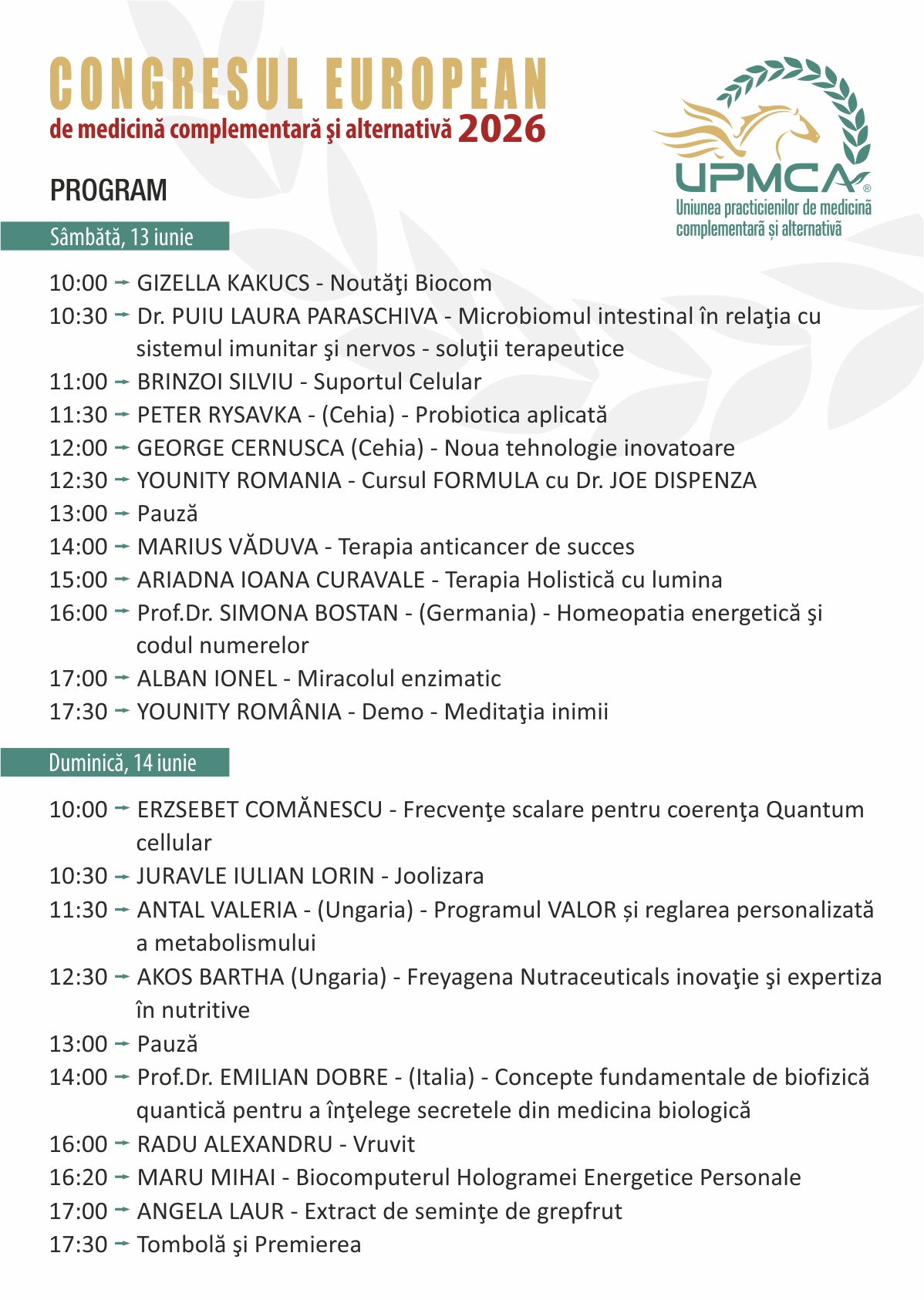 CONGRESUL EUROPEAN de MEDICINĂ ALTERNATIVĂ 13-14 iunie 2026